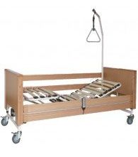 Letto a 3 snodi a movimentazione elettrica, con poggiatesta inclinabile fino a 75° e poggiagambe inclinabile fino a 40°. Piano a doghe in ferro. Struttura in tubolare di acciaio verniciato